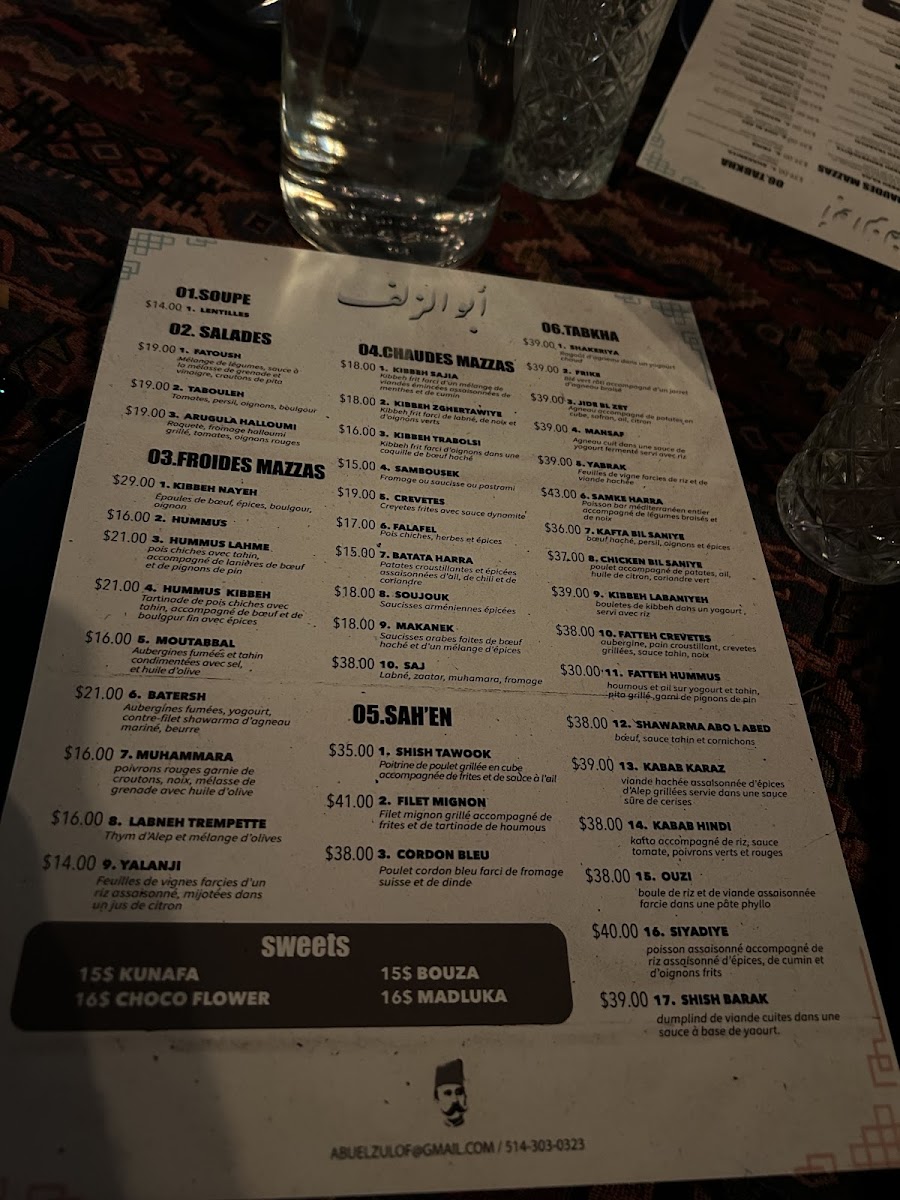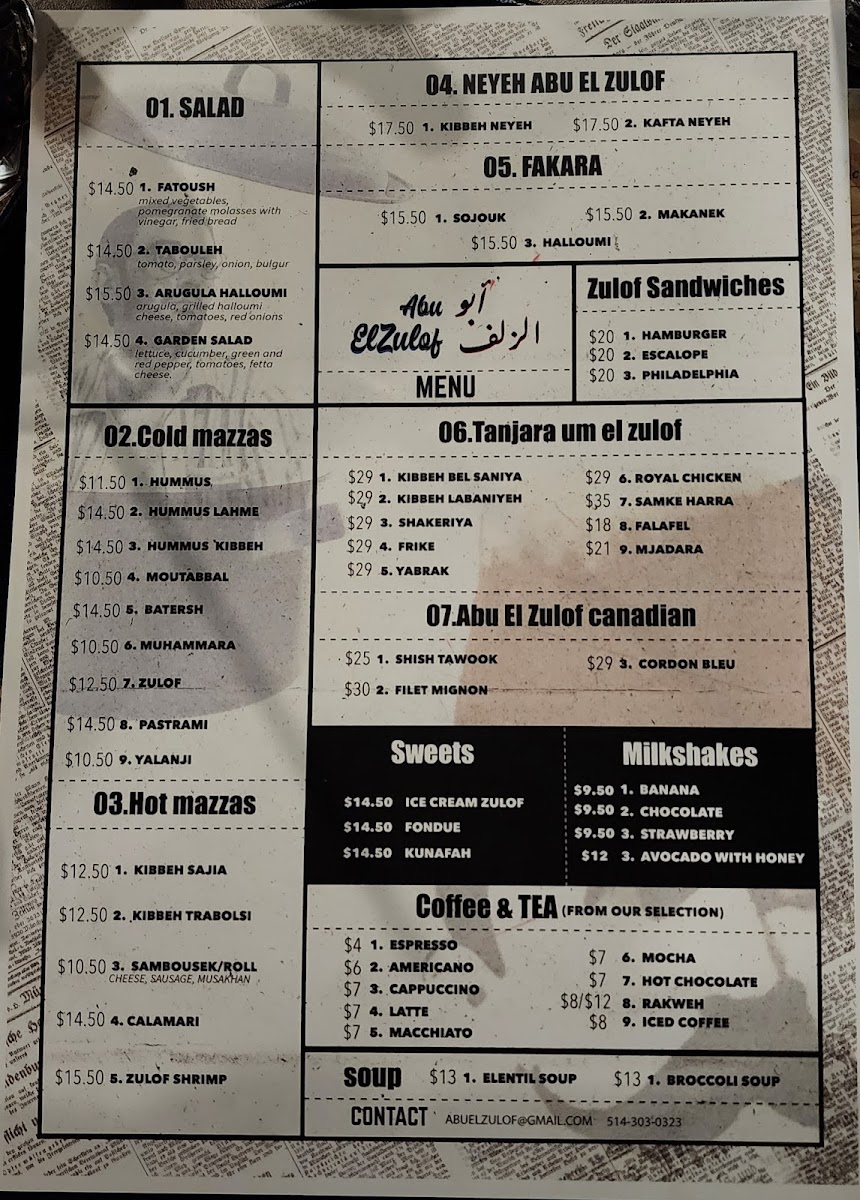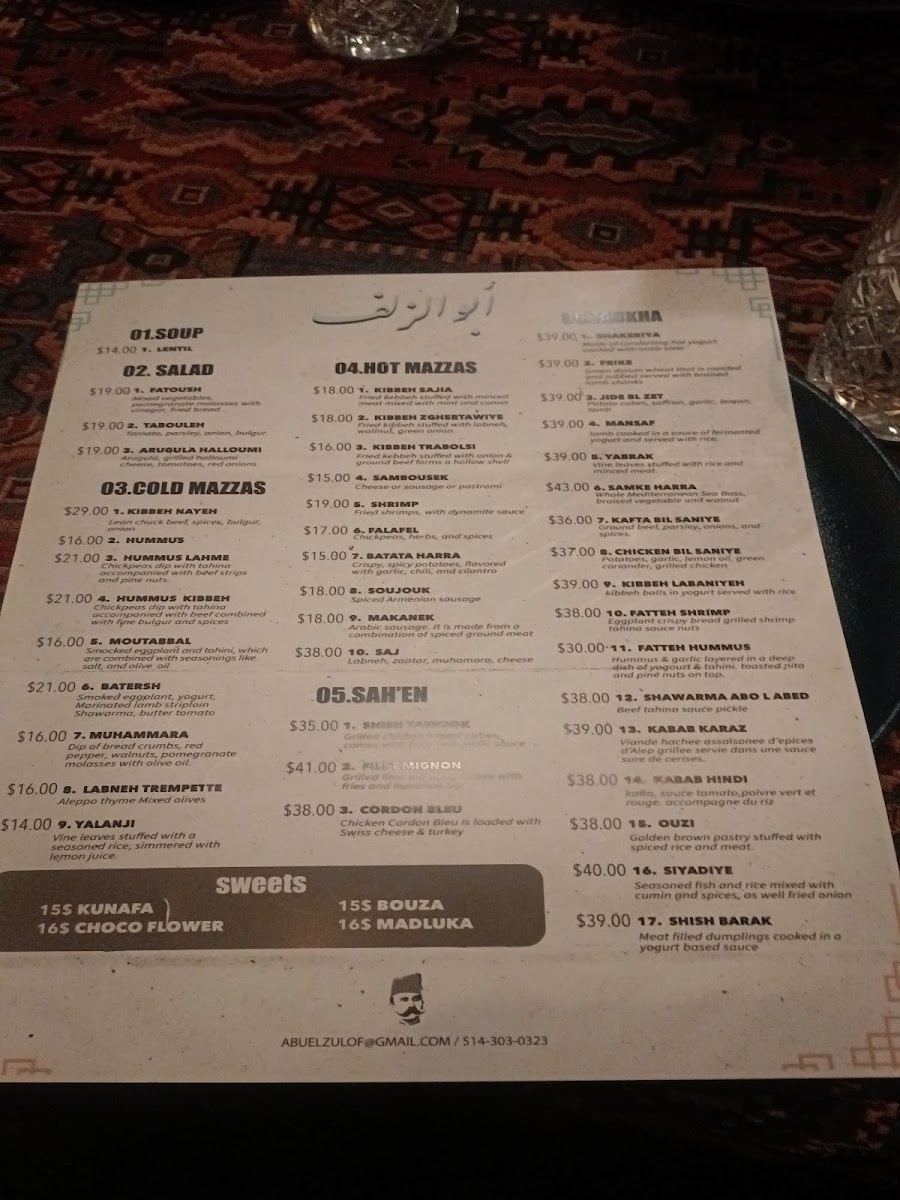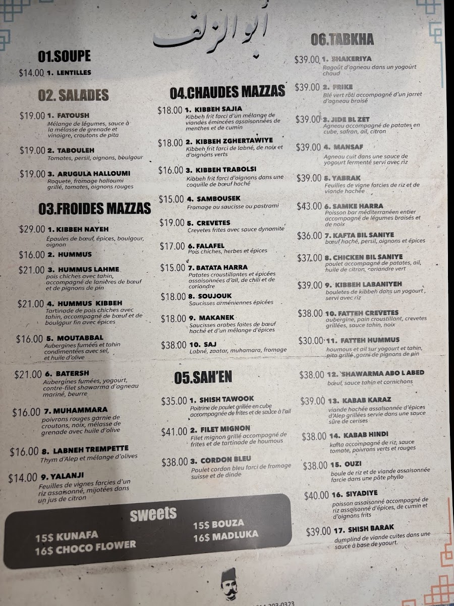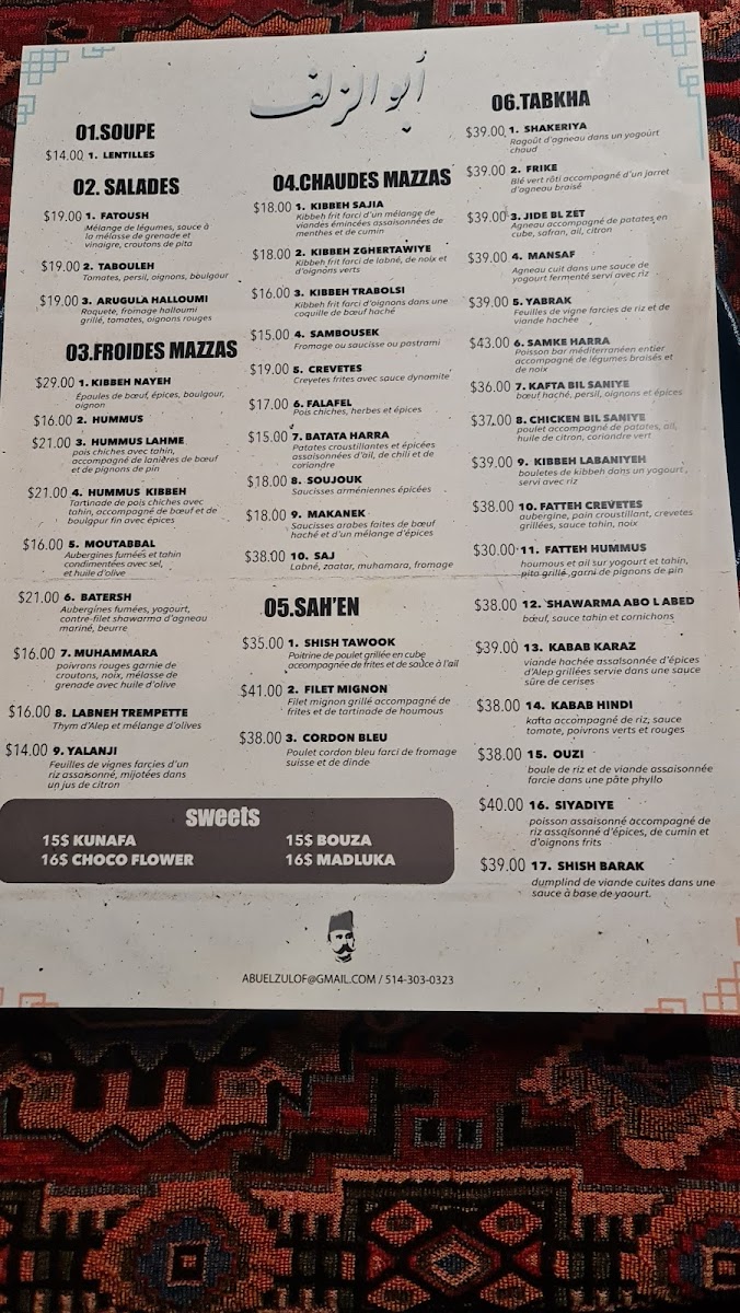 Introducing the vibrant menu at Abu el Zulof, located in the heart of Montreal. This authentic Syrian restaurant offers a delightful array of dishes that capture the essence of Middle Eastern cuisine. Each element of the menu is meticulously crafted, showcasing fresh ingredients and traditional cooking techniques.